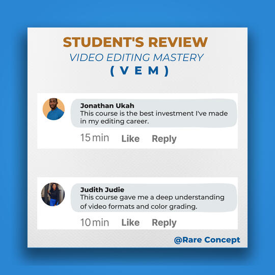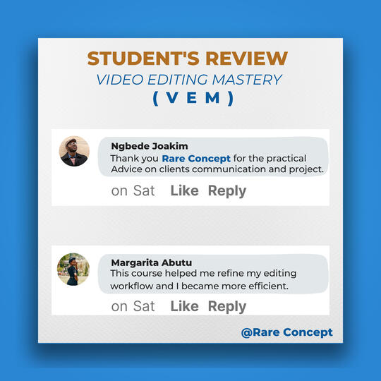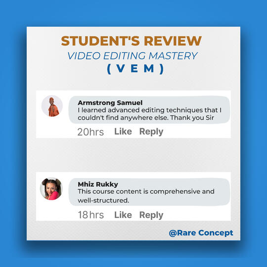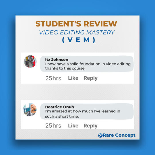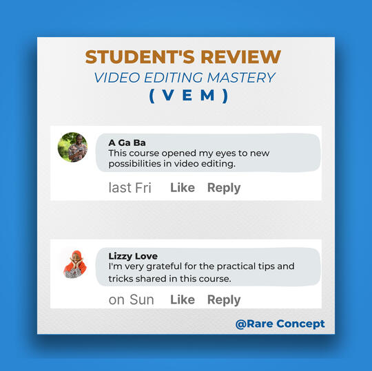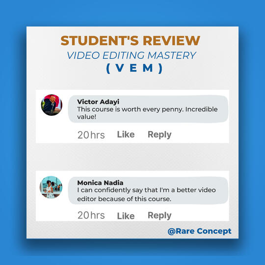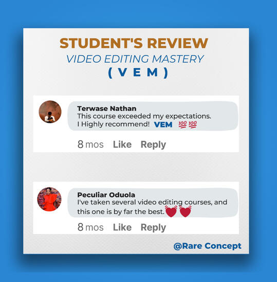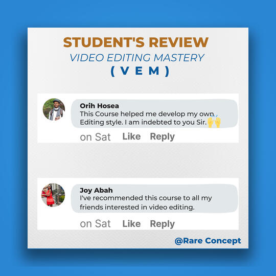 I don't want to bore you with lots of testimonials from my past and present students.But the truth is, my Video Editing Mastery course will boost your sales, just like it has worked for my students in the past years.If these are the results you have been seeking as a digital marketer, affiliate marketer, physical product owner, business owner, etc.Then don't waste too much time hoping for a turnaround in your business without taking any action.Instead, get this course and join the 99% of the most sought-after video editors globally.The original price value for this course is 80,000 Naira.However, as an early bird, I am offering a discounted price of 1,000Naira for the first 15 persons.Make your one-time payment using this link: